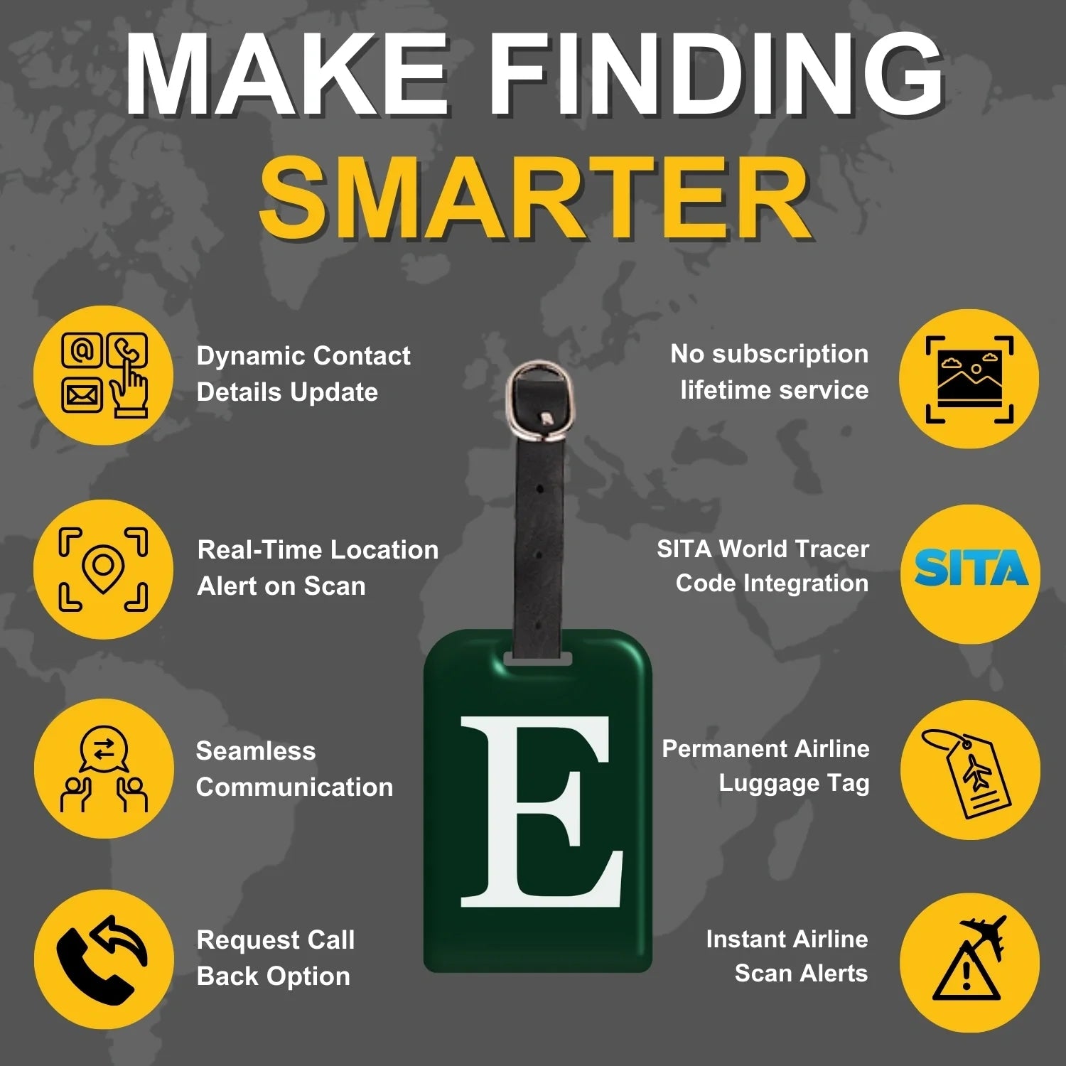 - [Stay in Control of your bags] Update your contact details online anytime, even after your bag is lost, for peace of mind. Relevant both in and outside airline systems, perfect for local travels, and smarter than a name tag - all with no subscription fees!